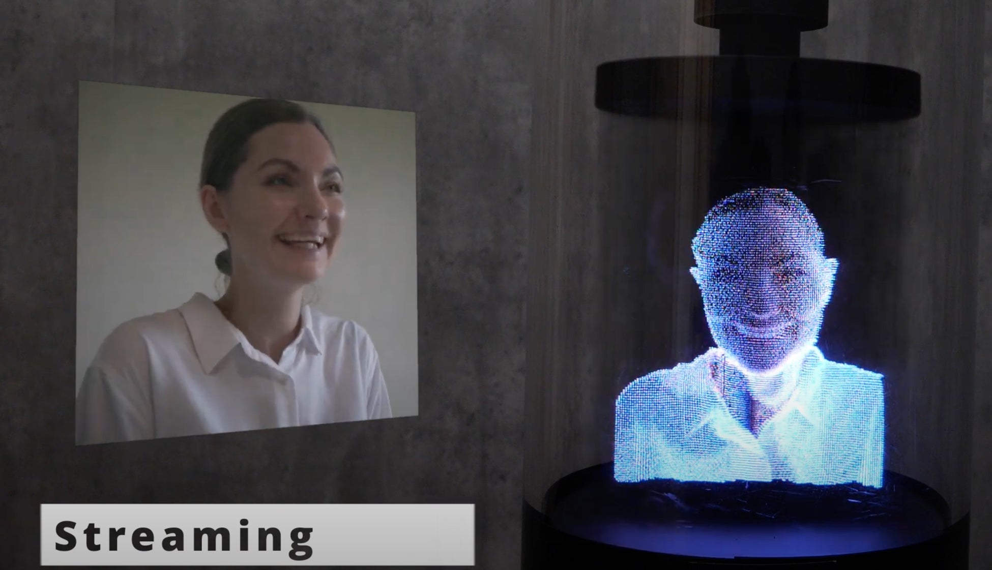 実体のある人物を3Dでキャプチャーし、brightvox 3D に3Dのままリアルタイム投影する当社の独自システムです。SF映画でホログラムがテレポーテーションしたような映像体験が可能です。